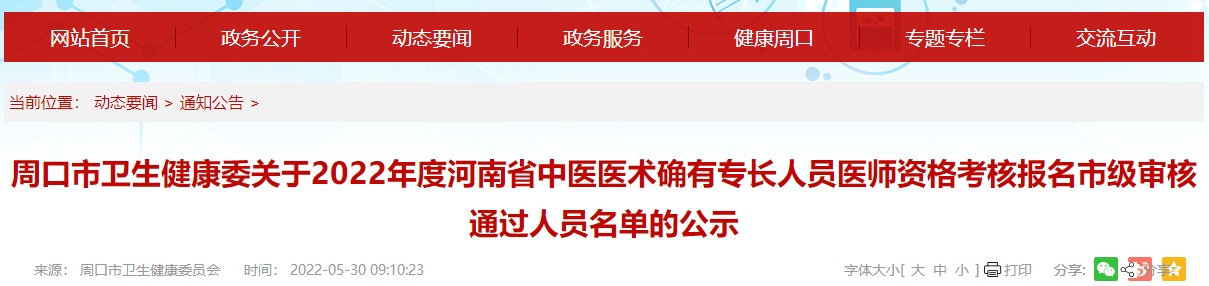 附件:周口市2022年度河南省中醫(yī)醫(yī)術(shù)確有專長人員醫(yī)師資格考核報(bào)名審核通過人員信息公示