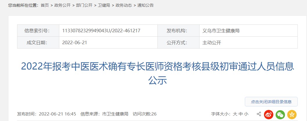 附件:義烏市2022年報考中醫(yī)醫(yī)術(shù)確有專長醫(yī)師資格縣級初審?fù)ㄟ^人員信息
