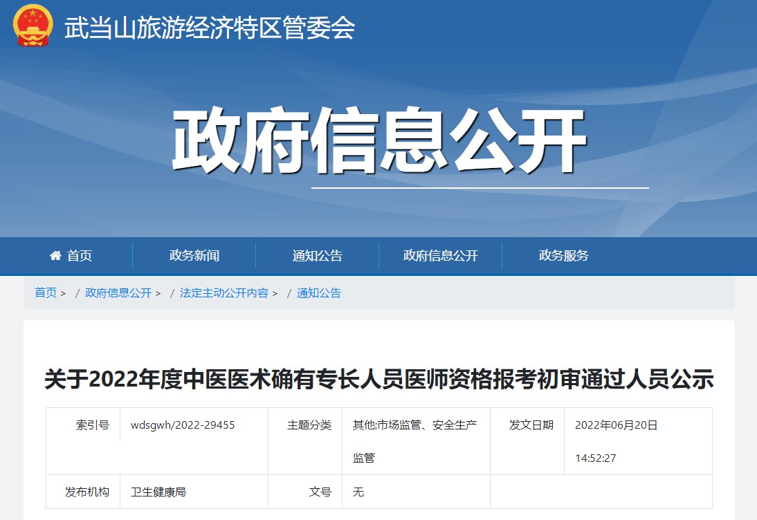 醫(yī)學(xué)教育網(wǎng)編輯為您搜集整理了“武當(dāng)山特區(qū)衛(wèi)生健康局關(guān)于2022年度中醫(yī)醫(yī)術(shù)確有專長人員醫(yī)師資格報(bào)考初審?fù)ㄟ^人員公示”的相關(guān)信息,具體內(nèi)容如下,請(qǐng)考生及時(shí)查看!