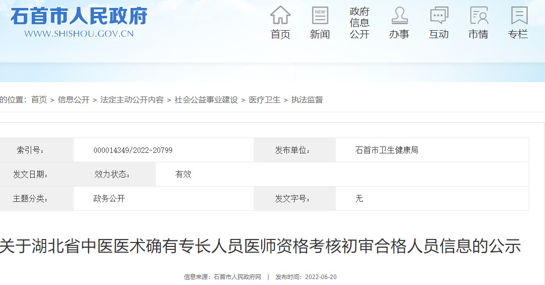 全國2022年中醫(yī)醫(yī)術(shù)確有專長(zhǎng)人員醫(yī)師資格考核報(bào)名通知匯總