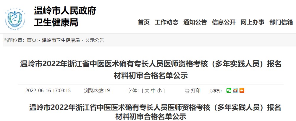 醫(yī)學(xué)教育網(wǎng)編輯為您搜集整理了“溫嶺市2022年浙江省中醫(yī)醫(yī)術(shù)確有專長(zhǎng)人員醫(yī)師資格考核報(bào)名材料初審合格名單(多年實(shí)踐人員)”的相關(guān)信息,具體內(nèi)容如下,請(qǐng)考生及時(shí)查看!