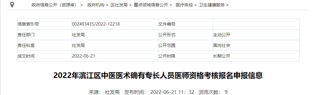 2022年杭州市濱江區(qū)中醫(yī)醫(yī)術(shù)確有專長(zhǎng)人員醫(yī)師資格考核報(bào)名申報(bào)信息