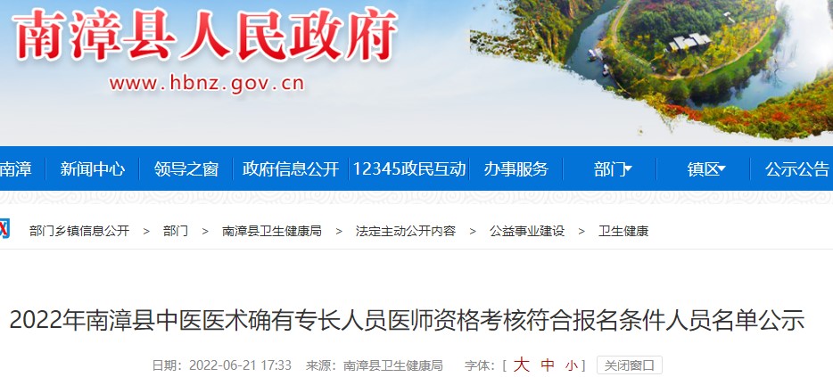 2022年南漳縣中醫(yī)醫(yī)術(shù)確有專長(zhǎng)人員醫(yī)師資格考核符合報(bào)名條件人員名單公示