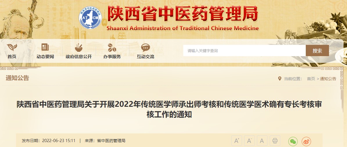 醫(yī)學(xué)教育網(wǎng)編輯為您搜集整理了“陜西省中醫(yī)藥管理局關(guān)于開展2022年傳統(tǒng)醫(yī)學(xué)師承出師考核和傳統(tǒng)醫(yī)學(xué)醫(yī)術(shù)確有專長考核審核工作的通知”的相關(guān)信息,具體內(nèi)容如下,請(qǐng)考生及時(shí)查看!