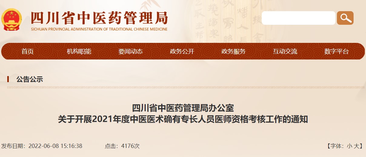 根據(jù)《中醫(yī)醫(yī)術確有專長人員醫(yī)師資格考核注冊管理暫行辦法》(中華人民共和國國家衛(wèi)生和計劃生育委員會令第15號)和《四川省中醫(yī)藥管理局關于印發(fā)四川省中醫(yī)醫(yī)術確有專長人員醫(yī)師資格考核注冊管理實施細則(暫行)的通知》(川中醫(yī)藥發(fā)〔2018〕24號),經研究,擬于近期組織開展2021年度中醫(yī)醫(yī)術確有專長人員醫(yī)師資格考核工作,現(xiàn)就有關事項通知如下。