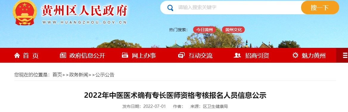醫(yī)學(xué)教育網(wǎng)編輯為您搜集整理了“2022年黃州區(qū)中醫(yī)醫(yī)術(shù)確有專長醫(yī)師資格考核報名人員信息公示”的相關(guān)信息,具體內(nèi)容如下,請考生及時查看!
