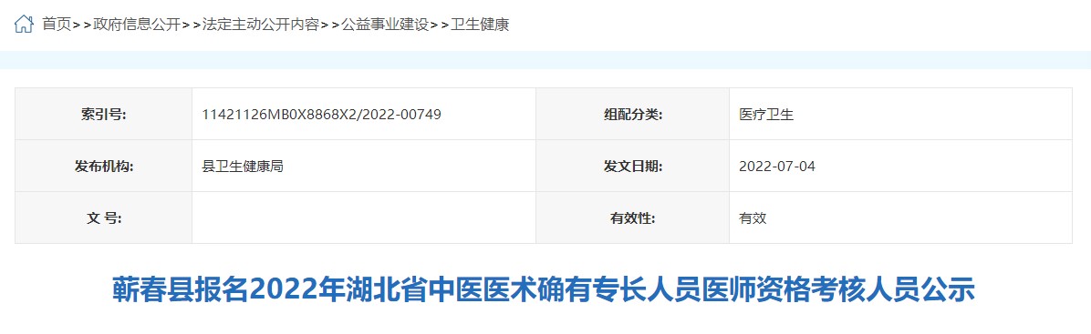醫(yī)學(xué)教育網(wǎng)編輯為您搜集整理了“蘄春縣報名2022年湖北省中醫(yī)醫(yī)術(shù)確有專長人員醫(yī)師資格考核人員公示”的相關(guān)信息,具體內(nèi)容如下,請考生及時查看!