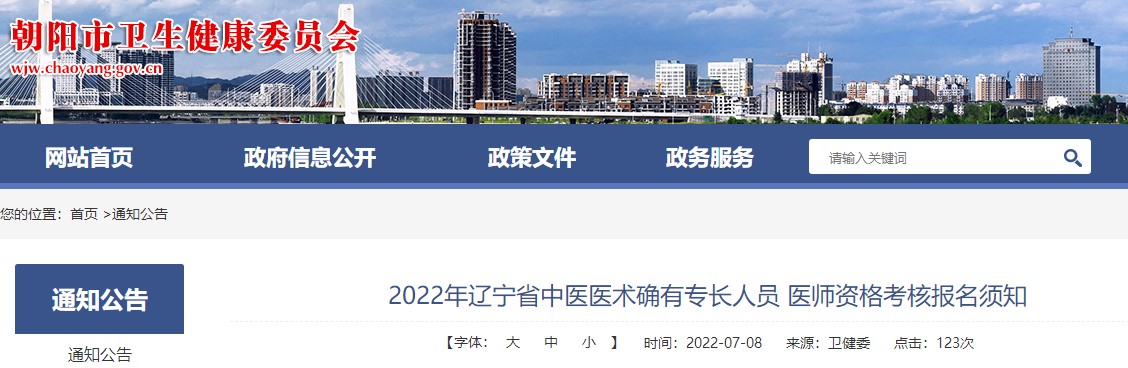 關(guān)于2022年遼寧省中醫(yī)醫(yī)術(shù)確有專長(zhǎng)人員醫(yī)師資格考核朝陽(yáng)市報(bào)名工作的通知,醫(yī)學(xué)教育網(wǎng)編輯為您搜集整理了相關(guān)文件,請(qǐng)考生及時(shí)查看!