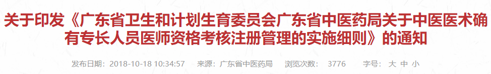 關(guān)于印發(fā)《廣東省衛(wèi)生和計劃生育委員會廣東省中醫(yī)藥局關(guān)于中醫(yī)醫(yī)術(shù)確有專長人員醫(yī)師資格考核注冊管理的實施細則》的通知,醫(yī)學教育網(wǎng)老師為大家整理總結(jié)如下,希望可以幫助到各位: