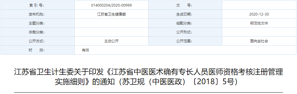 江蘇省中醫(yī)醫(yī)術(shù)確有專長人員醫(yī)師資格考核注冊管理實施細則