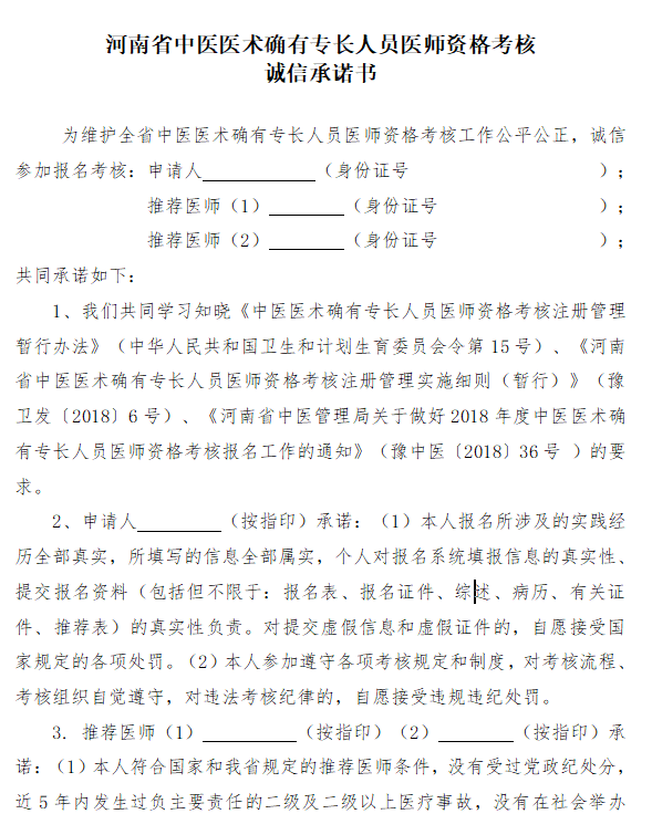 附件下載:河南省中醫(yī)醫(yī)術(shù)確有專長人員醫(yī)師資格考核承諾書