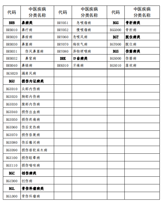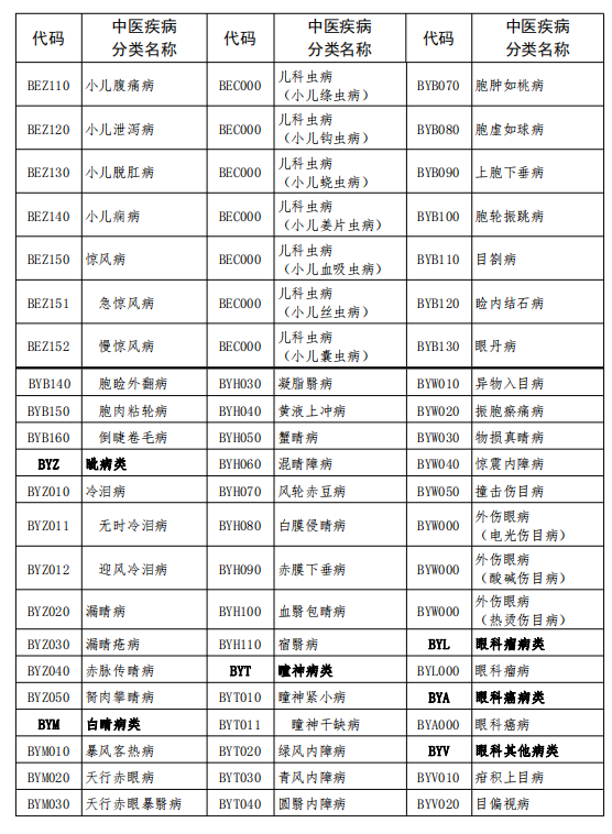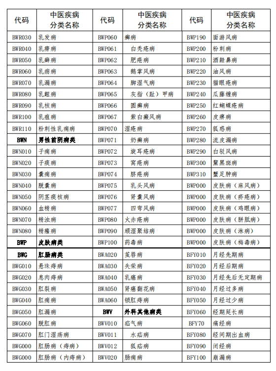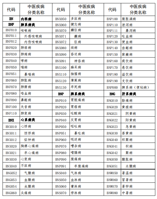 中醫(yī)疾病名稱與分類代碼表