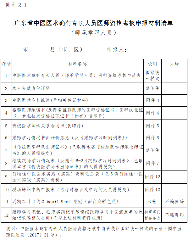 廣東省中醫(yī)醫(yī)術(shù)確有專長人員醫(yī)師資格考核申報(bào)材料清單