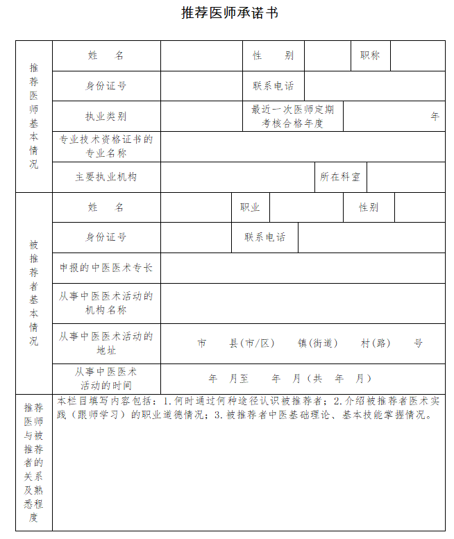 關(guān)于“中醫(yī)醫(yī)術(shù)確有專長考核報名材料:推薦醫(yī)師承諾書下載”相關(guān)內(nèi)容,相信報考廣東省中醫(yī)醫(yī)術(shù)確有專長人員醫(yī)師資格考核的考生都想知道,為方便大家了解,在此醫(yī)學(xué)教育網(wǎng)小編為大家整理如下內(nèi)容: