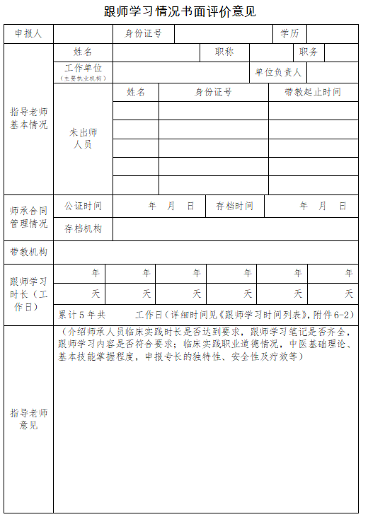 以上為“中醫(yī)醫(yī)術(shù)確有專長考核跟師學(xué)習(xí)情況書面評價意見填寫模板”全部內(nèi)容,由醫(yī)學(xué)教育網(wǎng)小編整理,更多信息請隨時關(guān)注醫(yī)學(xué)教育網(wǎng)!