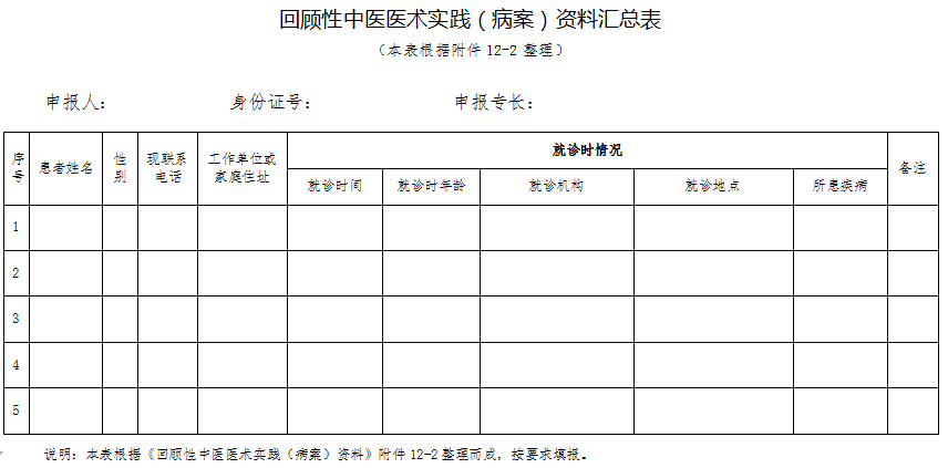 回顧性中醫(yī)醫(yī)術(shù)實(shí)踐(病案)資料匯總表