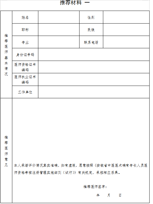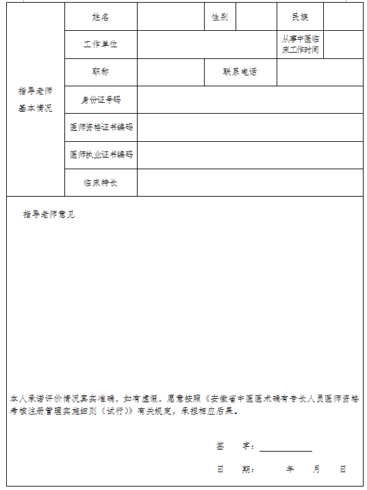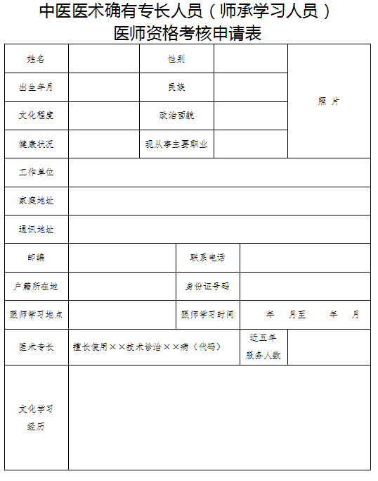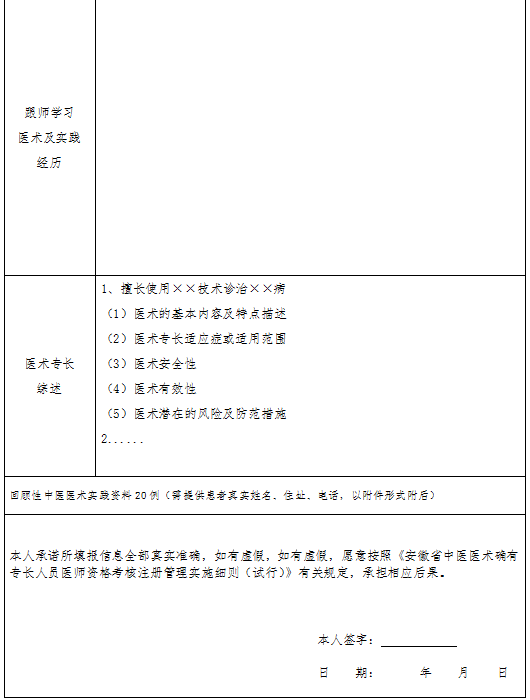 1.本表供中醫(yī)醫(yī)術確有專長人員(師承學習人員)申請參加醫(yī)師資格考核時使用。
