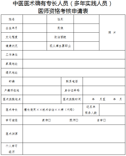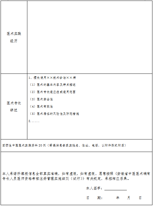 1.本表供中醫(yī)醫(yī)術確有專長人員(多年實踐人員)申請參加醫(yī)師資格考核時使用。