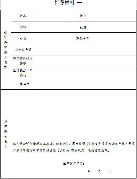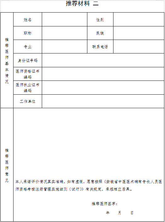 15.推薦醫(yī)師意見:包括被推薦人姓名、醫(yī)術專長和推薦理由等。