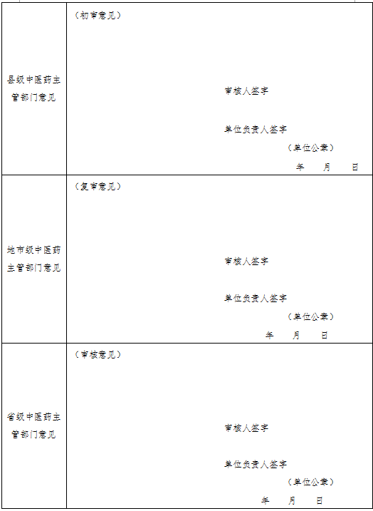 3.第1——2頁由申請人填寫,第3-4頁由推薦醫(yī)師填寫,第5頁由各級中醫(yī)藥主管部門填寫。