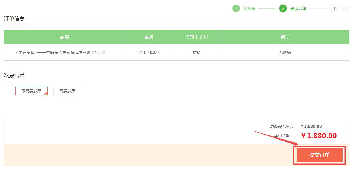 3、在訂單頁確認(rèn)無誤后,點(diǎn)擊“提交訂單”;