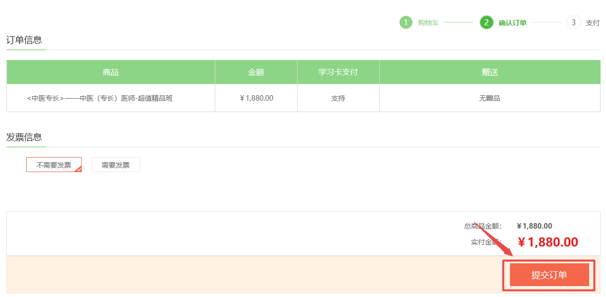 3、在訂單頁(yè)確認(rèn)無(wú)誤后,點(diǎn)擊“提交訂單”;