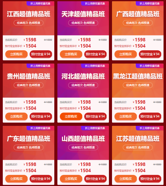活動(dòng)期間:11月5日00:00-11月11日23:59,點(diǎn)擊活動(dòng)頁(yè)面“立即購(gòu)買”,可享8.5折購(gòu)課優(yōu)惠,購(gòu)課不等待,早報(bào)名早學(xué)習(xí)!11月5日00:00-11月10日23:59期間預(yù)付定金可8折優(yōu)惠購(gòu)課,尾款支付時(shí)間為11月11日00:00-23:59。