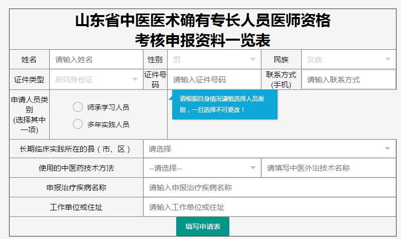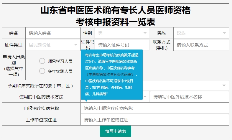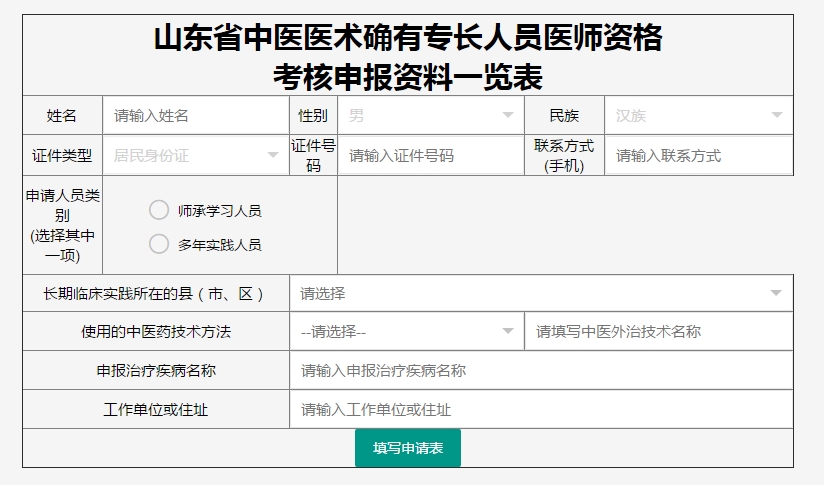 關(guān)于2019年山東省中醫(yī)醫(yī)術(shù)確有專長人員醫(yī)師資格考核申報資料一覽表填寫,相信很多考生想要了解,下面將有關(guān)資料為大家整理如下:
