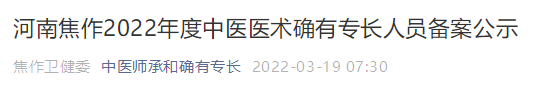 通知原文: 焦作市2022年度中醫(yī)醫(yī)術確有專長人員醫(yī)師資格考核備案工作公示