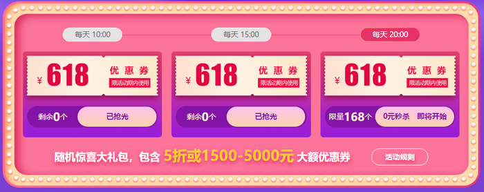 每天10點、15點、20點立搶618元優(yōu)惠券