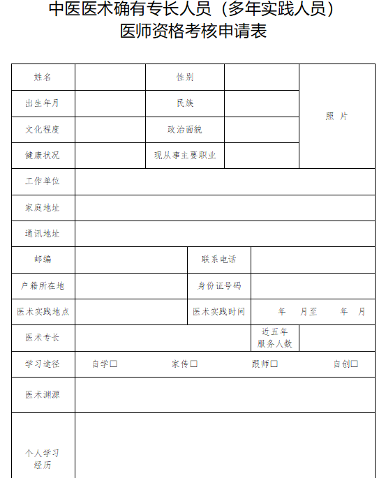 “中醫(yī)醫(yī)術(shù)確有專長人員(多年實(shí)踐人員)醫(yī)師資格考核申請表(寧夏)”很多人都想知道,醫(yī)學(xué)教育網(wǎng)小編整理下文,希望可以幫助到大家。