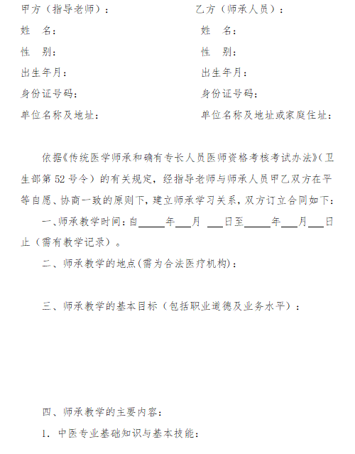 附件2—中醫(yī)醫(yī)術師承關系合同書