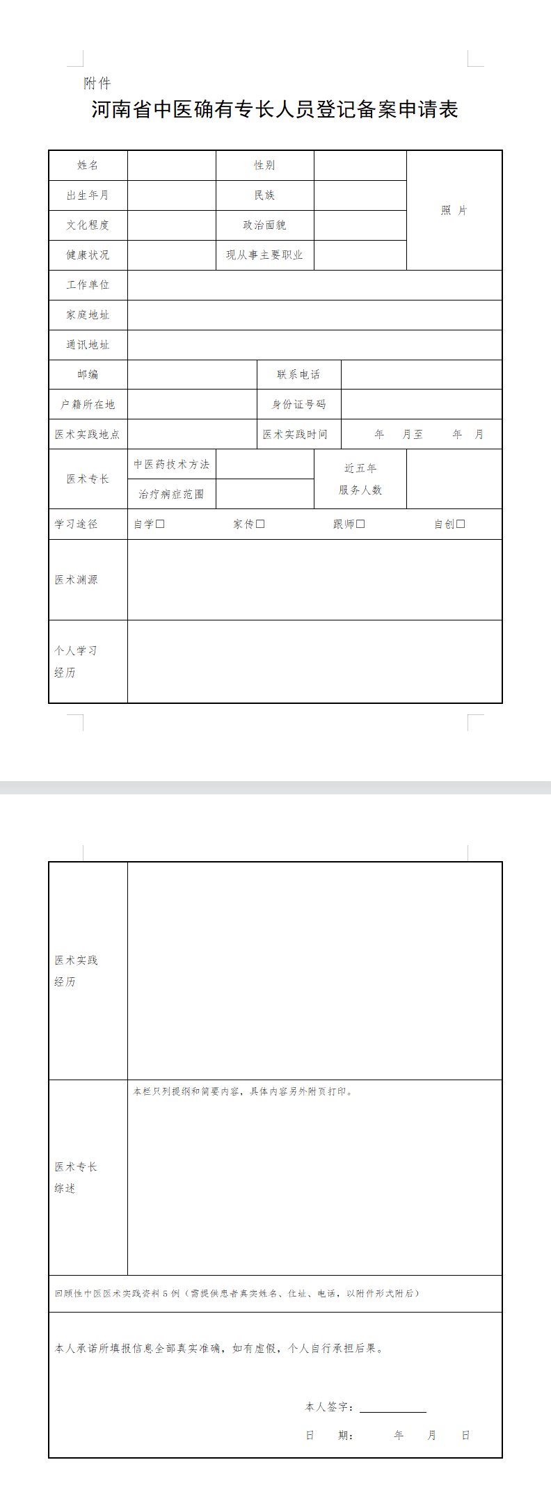 附件: 河南省中醫(yī)確有專長(zhǎng)人員登記備案申請(qǐng)表