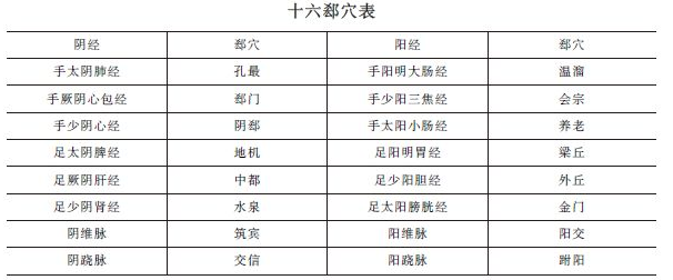 十二經(jīng)脈和奇經(jīng)八脈中的陰蹺脈、陽蹺脈、陰維脈、陽維脈之經(jīng)氣深聚的部位稱為郄穴。