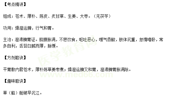 關(guān)于“中醫(yī)醫(yī)術(shù)確有專長考核“平胃散的功效與作用”考點(diǎn)”相關(guān)內(nèi)容,相信報(bào)考中醫(yī)醫(yī)術(shù)確有專長考核的考生都在學(xué)習(xí),為幫助大家備考, 在此醫(yī)學(xué)教育網(wǎng)小編為大家整理如下內(nèi)容:
