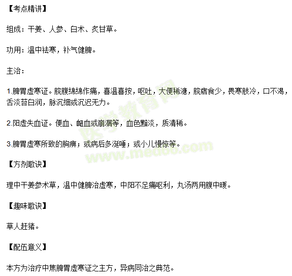 關(guān)于“中醫(yī)醫(yī)術(shù)確有專長(zhǎng)考點(diǎn):理中丸”相關(guān)內(nèi)容,相信參加中醫(yī)醫(yī)術(shù)確有專長(zhǎng)考核的考生都在關(guān)注,為幫助大家了解,在此醫(yī)學(xué)教育網(wǎng)小編為大家整理如下內(nèi)容: