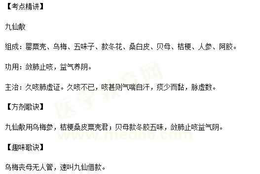 關(guān)于“中醫(yī)醫(yī)術(shù)確有專(zhuān)長(zhǎng)方劑考點(diǎn):九仙散的方歌口訣”相關(guān)內(nèi)容,相信參加中醫(yī)醫(yī)術(shù)確有專(zhuān)長(zhǎng)考核的考生都在學(xué)習(xí),為幫助大家了解,在此醫(yī)學(xué)教育網(wǎng)小編為大家整理如下內(nèi)容: