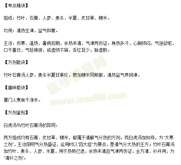 關于“中醫(yī)醫(yī)術確有專長方劑考點:竹葉石膏湯方歌口訣”相關內容,相信參加中醫(yī)醫(yī)術確有專長人員醫(yī)師資格考核的考生都想知道, 針對此問題,醫(yī)學教育網小編為大家整理如下內容: