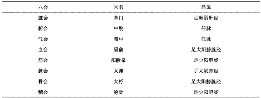 八會(huì)穴表