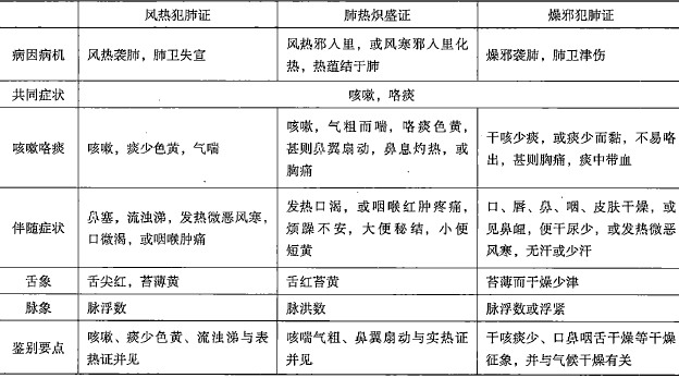 風(fēng)熱犯肺證、肺熱熾盛證、燥邪犯肺證比較