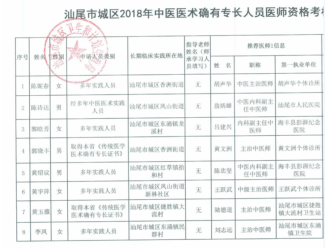 近期汕尾市城區(qū)發(fā)布2018年中醫(yī)醫(yī)術(shù)確有專長(zhǎng)人員醫(yī)師資格考核報(bào)名人員信息公示信息,在此小編為大家做以下匯總,可以作為參考: