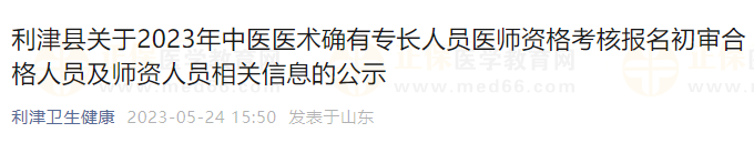 山東省東營市利津縣2023年中醫(yī)醫(yī)術(shù)確有專長(zhǎng)人員醫(yī)師資格考核審核最新動(dòng)態(tài)已發(fā)布,剛剛結(jié)束考核報(bào)名縣級(jí)初審,請(qǐng)東營市利津縣報(bào)名中醫(yī)醫(yī)術(shù)確有專長(zhǎng)的考生及時(shí)查看!