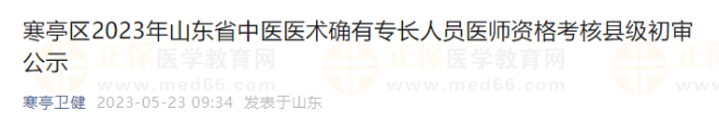 山東省濰坊市寒亭區(qū)2023年中醫(yī)醫(yī)術確有專長人員醫(yī)師資格考核審核最新動態(tài)已發(fā)布,剛剛結(jié)束考核報名縣級初審,請山東濰坊市寒亭區(qū)報名中醫(yī)醫(yī)術確有專長的考生及時查看!