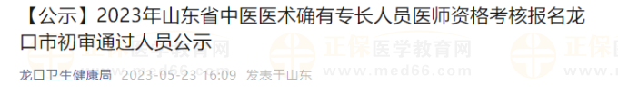 山東省龍口市2023年中醫(yī)醫(yī)術(shù)確有專長人員醫(yī)師資格考核審核最新動態(tài)已發(fā)布,請山東龍口市報名中醫(yī)醫(yī)術(shù)確有專長的考生及時查看!