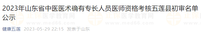 山東省五蓮縣2023年中醫(yī)醫(yī)術(shù)確有專長人員醫(yī)師資格考核審核最新動態(tài)已發(fā)布,剛剛結(jié)束考核報名縣級初審,請五蓮縣報名中醫(yī)醫(yī)術(shù)確有專長的考生及時查看!