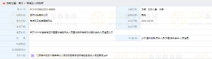 江蘇省各地區(qū)2023年中醫(yī)醫(yī)術(shù)確有專長人員醫(yī)師資格考核報(bào)名動(dòng)態(tài):