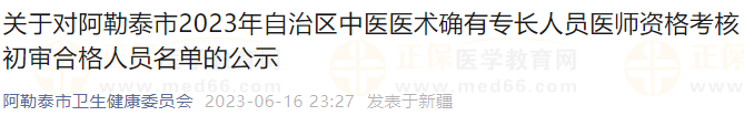 關(guān)于對(duì)阿勒泰市2023年自治區(qū)中醫(yī)醫(yī)術(shù)確有專(zhuān)長(zhǎng)人員醫(yī)師資格考核初審合格人員名單的公示