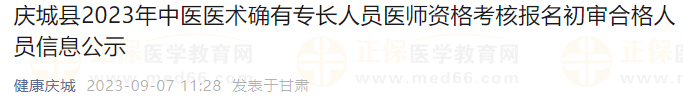 甘肅慶城縣2023年中醫(yī)醫(yī)術(shù)確有專長人員醫(yī)師資格考核報名初審合格人員信息公示,初審已經(jīng)結(jié)束,請考生及時查看!