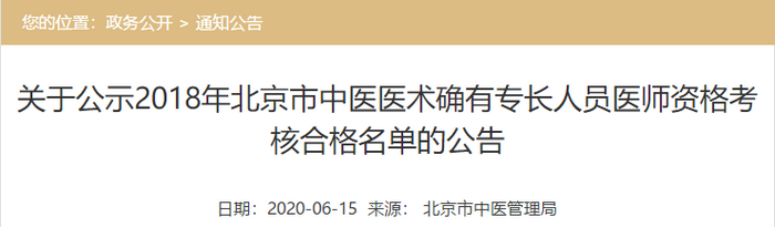 根據(jù)《中醫(yī)醫(yī)術(shù)確有專長人員醫(yī)師資格考核注冊管理暫行辦法》(國家衛(wèi)生和計劃生育委員會令第15號)、《北京市中醫(yī)醫(yī)術(shù)確有專長人員醫(yī)師資格考核注冊管理暫行辦法實(shí)施細(xì)則》(京衛(wèi)發(fā)〔2018〕6號)、《 北京市中醫(yī)管理局關(guān)于2018中醫(yī)醫(yī)術(shù)確有專長人員醫(yī)師資格考核報名及相關(guān)工作的通知》精神,北京市中醫(yī)管理局于2018年11月13日(試考)和2019年11月6至15日組織開展中醫(yī)醫(yī)術(shù)確有專長人員醫(yī)師資格考核工作。經(jīng)專家考核認(rèn)定,確定58人通過考核(名單附后),現(xiàn)予以公示,公示期為5個工作日(2020年6月15日至2020年6月19日)。