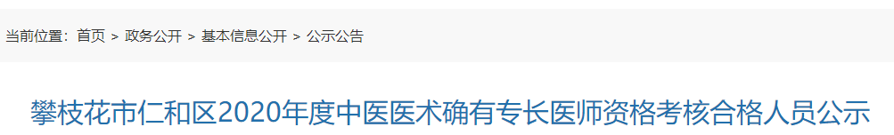 附件:攀枝花市仁和區(qū)2020年度中醫(yī)醫(yī)術(shù)確有專長人員醫(yī)師資格考核合格人員信息公示表